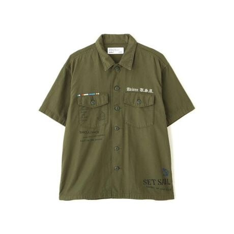 AGED−LOOK S/S UTILITY SHIRT