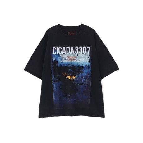 深いブルートーンのアートワークに、「CICADA 3307」を象徴するモチーフを組み合わせ、ストリートとアートが融合した印象的な一着に仕上げています。