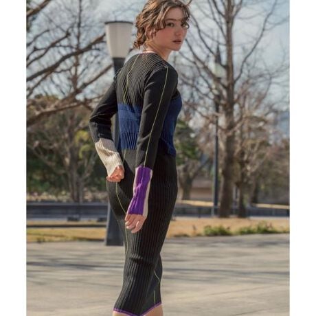 軽やかな薄手リブ素材を使用したニットワンピース。