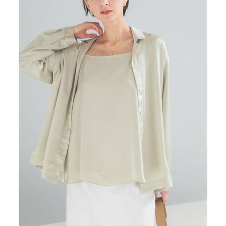 表面に繊細な凹凸を施した、ニュアンス豊かなサテン素材を使用し、ほんのりと光を纏うような質感は、お顔周りを明るく知的な印象に。シワになりにくく、上質な風合いを長く保てるのも嬉しいポイント。胸元の直線的なラインと、華奢な肩ひもが女性らしさを引き立て、サイドに施したスリットが着こなしにさりげない抜け感を演出。大人の日常に、そっと品格を添えてくれる一着に仕上げました。シャツやジャケットのインナーに忍ばせて、艶感を覗かせるのがおすすめ。いつものスタイルに重ねるだけで、ぐっと鮮度の高い着こなしが完成します。同素材のシャツやスカートを合わせた、統一感のあるセットアップスタイルもぜひお楽しみください。