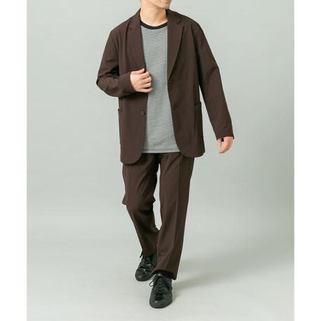 ジャケットとスラックスの2点セットで、コーディネートにも悩まずキレイめコーディネートが完成。