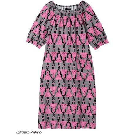 [型番:HNX216]・少しフシ(糸節)の見える生地感が特徴でやさしい肌ざわりの綿100%の天竺素材を使用・ドレスを着て、おめかしをしているうさぎがかわいらしいテキスタイル・袖口ゴム入替設計※お洗濯は、必ず「取扱い表示」にしたがってください。