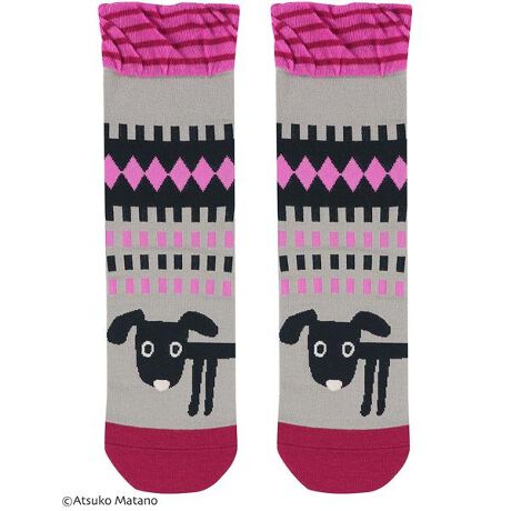 [型番:HQY016]・ジャカード編みの綿混ソックス・犬のかわいいデザイン・はき口部分はしめつけ感の少ないやさしいはきごこち・プレゼントにもおすすめ※お洗濯は、必ず「取扱い表示」にしたがってください。