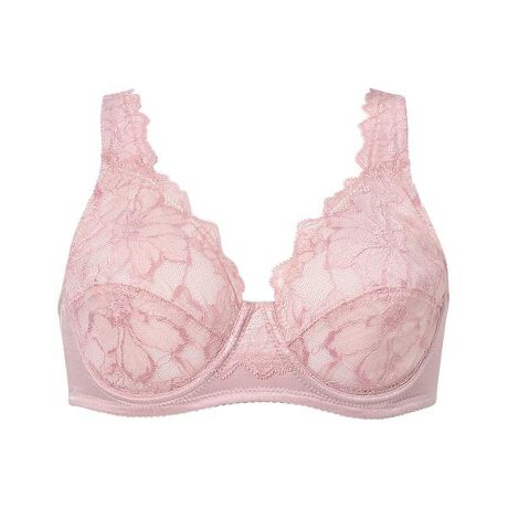 ●やさしいつけごこち ワイヤーは外付け アンダー部分全体に伸縮性をもたせ、快適なつけごこち ストラップのサイドからバック上辺と、アンダーは伸びのよいストレッチテープを使用●カップ肌側と土台からバックにかけてはやさしい肌ざわり カップ肌側は綿混素材を、土台からバックにかけては綿混パワーネットを使用●ボーンの肌あたり軽減設計 脇ささえボーンがバック生地の中に縫製され、直接肌にあたらない設計仕様「ワイヤーブラになんとなく抵抗感がある」という方におすすめのフルカップブラ。外付けワイヤーを使用しており、肌側のあたりを軽減します。バストを広範囲に包みこみ、肌になじむようなつけごこちです。前中心のアンダー部分やカップ部分はしなやかで、からだにやさしくフィット。長距離移動や旅先など、気楽にブラをつけたいシーンなどにも活躍します。花がふわりと咲いたようなレースのデザインはやさしい気持ちにしてくれそう。●詳細情報ワイヤーありホック後ろ留め(B・C・D・E70-85)ホック2段3調節(F, B・C・D・E90-100)ホック3段3調節パッド受けなしボーンあり※お洗濯は、必ず「取扱い表示」にしたがってください。