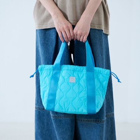ランチ用にも使いやすいサイズのトートは、両脇のパラシュートコードを引っ張ることにより巾着のようなシルエットにも変更できます。