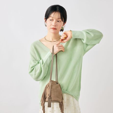 ・和紙のドライ感とテンセルのしなやかさを合わせ持った素材での深Vネックプルオーバー