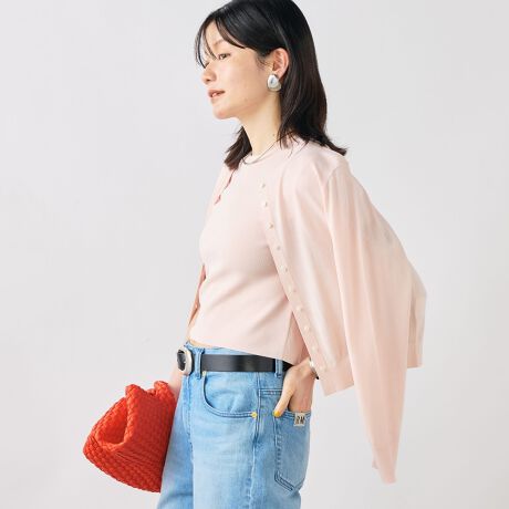 ・コンパクトなサイズ感のクルーネックカーディガン