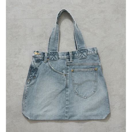 Leeのアイコニックな「アメリカンライダース」をそのままリメイクして作成したかのような、遊び心溢れるトートバッグです。あえてバッグとしては歪な形に仕上げることで、ジーンズ特有のヒップの丸みまでリアルに表現しました。