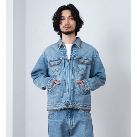 Wranglerの歴史に名を刻む名作ジャケット「24MJZ」の後期モデルをベースに、現代的なエッセンスを加えて再構築した一着です。最大の特徴は、襟元、ポケット、裾など各所に施された太番手の「ブランケットステッチ」。