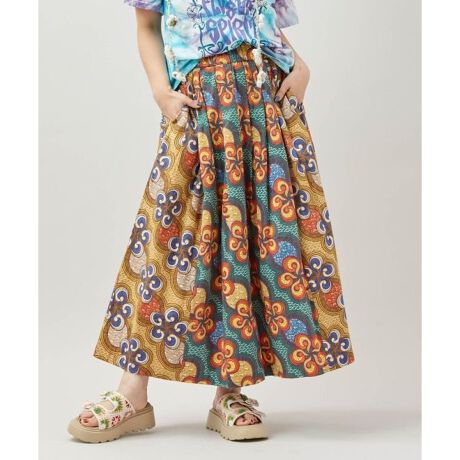 [型番:IAC-6142-2026]キテンゲ柄を現代風にアレンジしたボリューミーなスカート。たっぷりのタックで動くたびに揺れるシルエットが印象的。ウエストはゴム仕様で着心地も抜群。鮮やかな色合いがコーディネートの主役に。