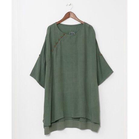 [型番:IDS-6134-2026]麻混素材のメンズトップス。ビッグシルエットで通気性も抜群。背刺しゅうや斜めボタンがアクセントになる洗練されたカジュアルスタイル。