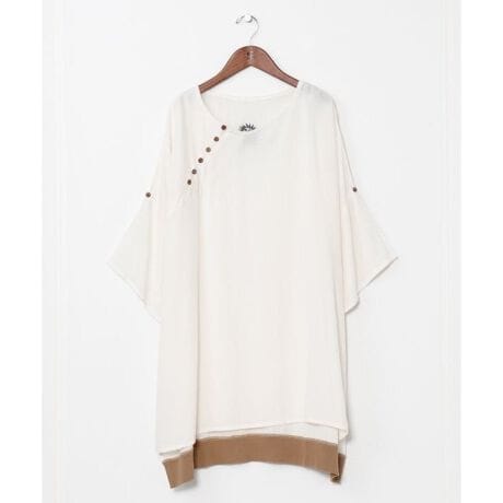 [型番:IDS-6134-2026]麻混素材のメンズトップス。ビッグシルエットで通気性も抜群。背刺しゅうや斜めボタンがアクセントになる洗練されたカジュアルスタイル。