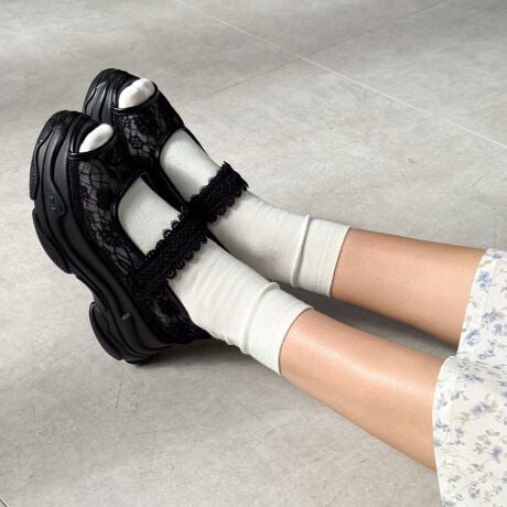 チュールレースのシアー感がありつつも、ソックス合わせで長いシーズン楽しめます。