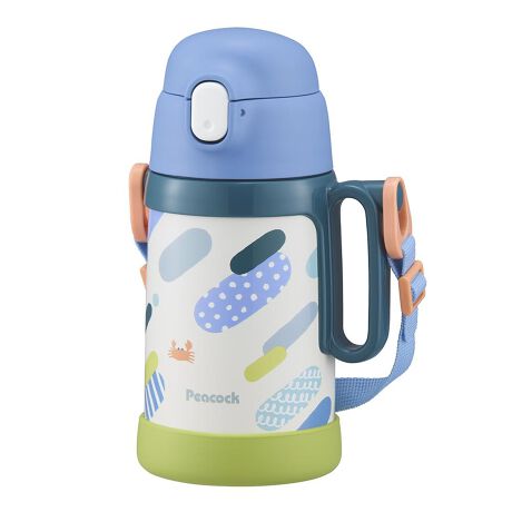 【成長に寄り添う2WAYボトル】ストローも直飲みもこれ1本、お子さまの毎日に寄り添う水筒。「Peacock ストロー&ダイレクト 2WAYボトル」【ストローも直飲みもおまかせ】せんユニットを付け替えるだけで2WAYに切り替えられる便利な構造◎【たっぷり入る大満足の容量】ストロー飲み時は480ml、ダイレクト飲み時は490mlでお出かけにも十分〇【ワンタッチで素早く水分補給】大きめボタンをポンと押すだけのラクラク操作でお子さまも一人で飲める♪【まほうびん構造でしっかり保冷】真空断熱のステンレスボトルだから暑い日でも安心。6時間後も冷たさをしっかりキープ! ※本品は保冷専用です。保冷効力:10℃以下【ハンドル&ショルダーベルト】握りやすい持ち手と長さ調節できるベルトで通園スタイルにもぴったり。【通園通学に便利な名前スペース】ボトル本体にお名前が書けるスペース付きで持ち物の管理もばっちり。【安心素材】内瓶はフッ素コート無しのステンレス製でお子様にも環境にもやさしい!【やさしいシリコーン底カバー】取り外しOKの底カバーが本体の傷を防ぎお子さまの体に当たっても安心〇【予備ストローで安心の備え】替えのストローがもう1セット付属だから汚れや紛失時も慌てない◎