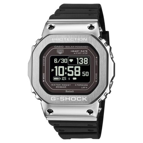 DW-H5600の機能はそのままに、ベゼル部分にステンレススチールを採用し、より幅広いシーンで着用できる仕上がりとしました。さらに、ベゼルのディンプル部分に4カ所の切削穴を設けることで、ハイテクギア感とスポーティーな印象を高めています。また、裏蓋にはカーボンファイバー強化樹脂ケースを採用。