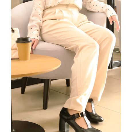 【aimohaオリジナル】ハイウエスト タック入りストレッチパンツ