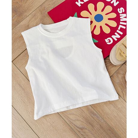 柔らかく肌触りの良い素材で仕立てられたタンクトップです。お子様の繊細な肌にも優しく、さらりとした着心地で快適に過ごせます。軽やかな素材感で、暑い季節でも涼しく快適な一枚です。