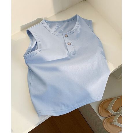 肌触りの良い柔らかな素材で仕立てられたタンクトップです。軽やかで快適な着心地が特徴で、お子様のデリケートな肌にも優しくフィットします。暑い季節でも快適に過ごせる一枚です。