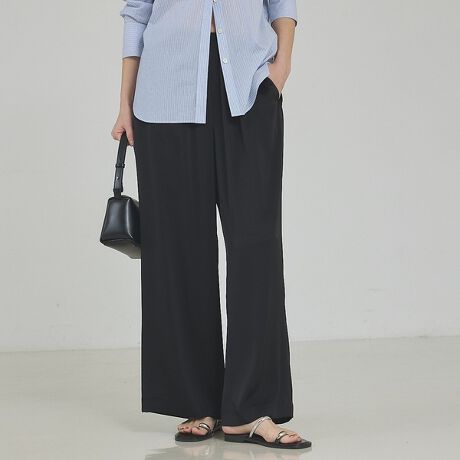 落ち感のある素材とワイドシルエットが、すっきりとした美脚ラインを演出します。