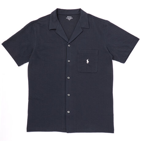 コットンと環境に配慮されたリサイクルポリエステルを混紡した、ニットシアサッカー素材のショートスリーブクルーネックシャツです。高いストレッチ性と、生地表面の凹凸がもたらす清涼感が特長。無地でありながら織柄がストライプに見える表面感と、軽い着心地も魅力です。左裾にホワイトで入れたブランドアイコンのポロプレイヤー刺繍もポイント。同素材を使用したショートパンツ(RM8-D303)も展開しているので、セットアップでの着用もオススメです。