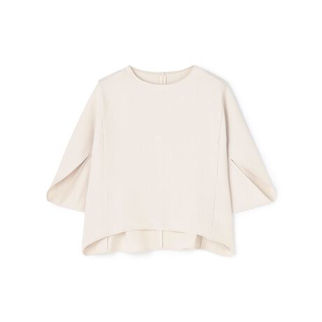 ■デザイン体を優しく包み込むようなゆとりのあるシルエットが魅力のブラウス。脇部分の切り替えを無くし、たっぷりと生地を使うことで、脇下に流れるエレガントなドレープを生み出します。さらに、袖口のスリット風デザインが腕周りをすっきりと見せてくれます。後ろはファスナー仕様で、着脱もスムーズです。オンオフ問わず幅広いシーンで活躍する、着回しの効く万能な一枚です。
