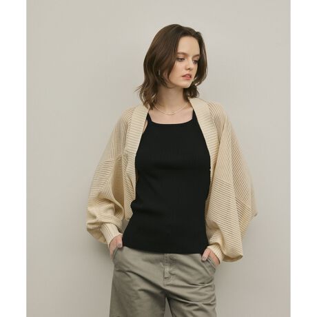 [型番:0126253108]ローシルク混素材と透明糸を使用したショートニットボレロ。※こちらのモデル着用画像はサンプル品を撮影しております。実際の商品と仕様、加工、サイズが若干異なる場合がございます。予めご了承くださいませ。