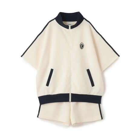バイカラーで可愛いフルジップの半袖のトラックジャケットとショートパンツのセットアップです。