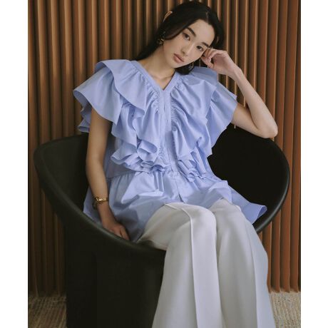 【2026SS】ボリュームラッフル Vネック チュニック ブラウス フリル