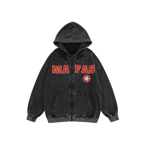 【HOOK】英字刺繍ウォッシュ加工ジップアップパーカー