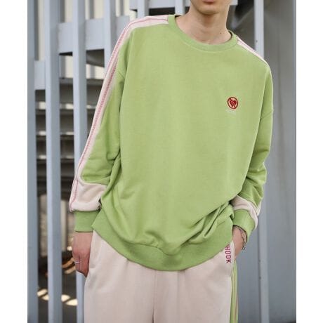 袖の切り替え線がカーブなっているユニックな配色スウェットトレーナー