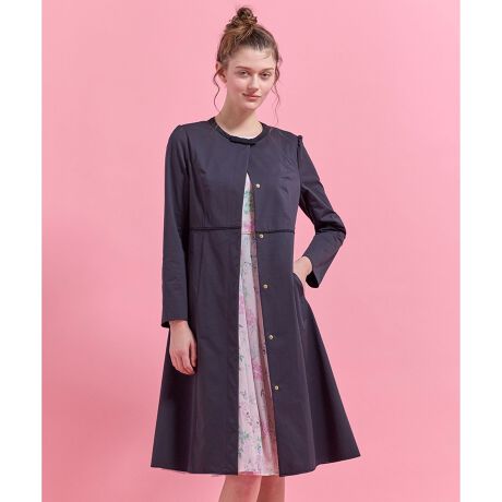 軽やかでストレッチ性のある素材を使用した、春にぴったりの着心地抜群のコート。TOCCAらしいバイカラーデザインがさりげなくアクセントに。顔まわりを華やかに見せる襟元のリボンディテールがフェミニンさを添えています。シンプルで美しいAラインシルエットは、身体のラインを拾いすぎず、上品で女性らしい印象に。裾がふわりと揺れるたびに軽やかさが際立ち、春のお出かけスタイルをよりエレガントに仕上げてくれます。また、程よいハリ感がありながらも柔らかく、動きに合わせてしなやかにフィットするため、長時間着ていてもストレスを感じにくいです。