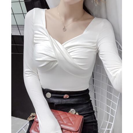 ・Vネックでデコルテ部分が綺麗に見せられ、フェミニンさもプラス