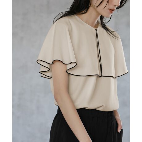 ふんわりとしたケープカラーのブラウスです。