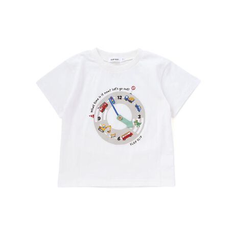 ホワイトは、ショベルカーや消防車、タクシーなどはたらくくるまが時計の数字のように並んだデザインで、時計の針は信号機をモチーフにしたユニークな仕上がり。