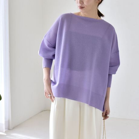 Vネックとクルーネックの前後2wayで着られるシアーニットプルオーバー。