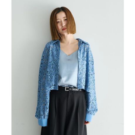 華やかなフラワーレースシャツと光沢のあるキャミソールの2点セット。