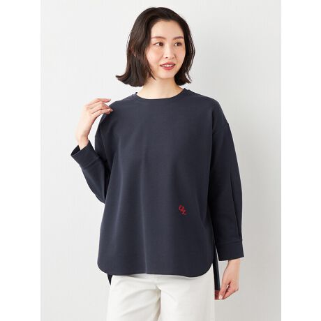 [型番:6251710]表面感のあるサーフニット素材を使用したカットソーチュニックです。サーフニットとは、ミニワッフルのような編み組織のことで、さらっとしたタッチが特徴です。ゆったりとしたシルエットと前後差のある丸みを帯びたラウンドヘム、深めのサイドスリットがスタイリングに抜け感を演出してくれます。Tシャツよりもきちんと感がありブラウスよりも気負わず着られるカットソーになっています。程よい厚み、肌離れの良い素材でロングシーズンで着用可能です。