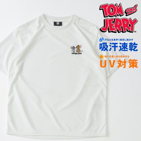 【Tom&Jerry/トム&ジェリー】 ワンポイント 刺繍 半袖 Tシャツ 吸汗速乾 UVカット