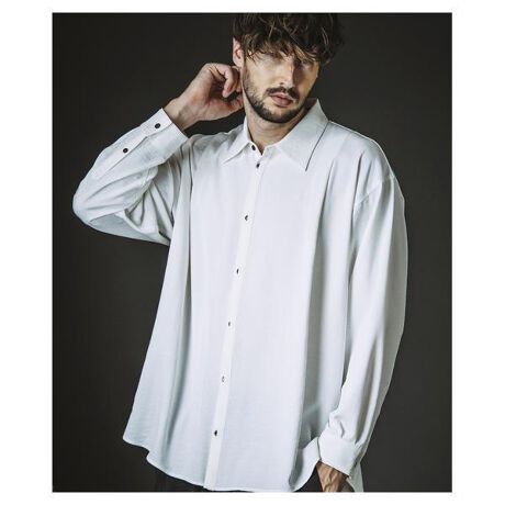 しなやかで薄手な素材感と、両肩にあしらったタックから生まれる流麗なドレープが特徴のオーバーサイズシャツ。