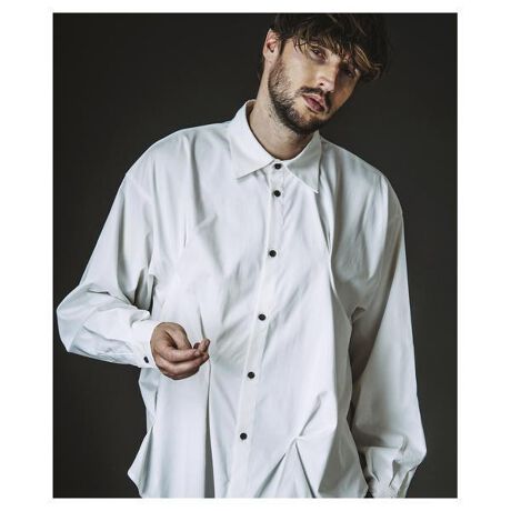 オーバーサイズシャツをベースに、不規則に配置したタックを落とし込んだランダムタックBIGシャツ。