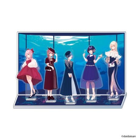 キャラクターと水族館モチーフの背景を組み合わせ、作品世界が立体的に楽しめるアクリルジオラマスタンド。