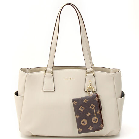 [型番:PXLHFBH1]シンプルな4WAYトート&ハンドバッグに、NEWアイコン柄のポーチをセットにしたバッグシリーズ。ポーチは取り外し可能で、トレンドのチャーム風アクセントとして、お気に入りのチャームをプラスして自分らしいアレンジも楽しめます。