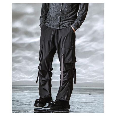 ストレッチ性を備えたポリエステル素材を採用し、テックとモードを融合させたイージーカーゴパンツ。