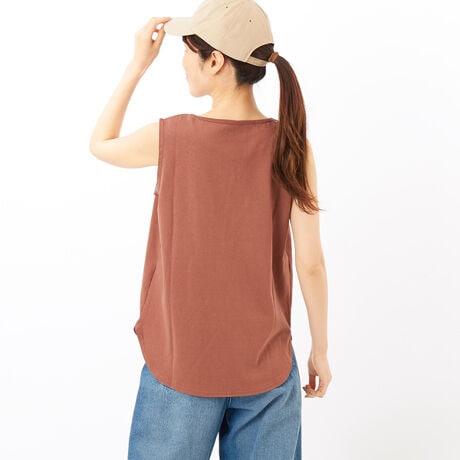 透け感のあるシアー素材やシャツのインナーとして、汗染みを気にせず着られる頼れる一枚。