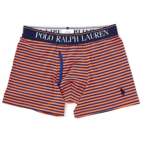 [型番:RM3-D101]オーガニックコットンを使用したコットンストレッチボクサーブリーフです。柔らかな質感と伸縮性を兼ね備えた快適な着心地が特長。ネイビーとブルーをベースにしたストライプ柄で、左裾に入れたブランドアイコンのポロプレイヤー刺繍もポイントです。前開き仕様。