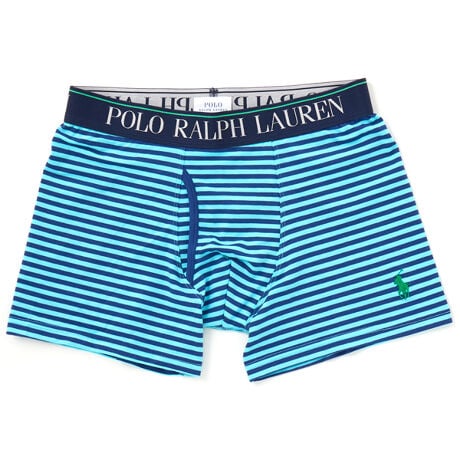 [型番:RM3-D101]オーガニックコットンを使用したコットンストレッチボクサーブリーフです。柔らかな質感と伸縮性を兼ね備えた快適な着心地が特長。ネイビーとブルーをベースにしたストライプ柄で、左裾に入れたブランドアイコンのポロプレイヤー刺繍もポイントです。前開き仕様。