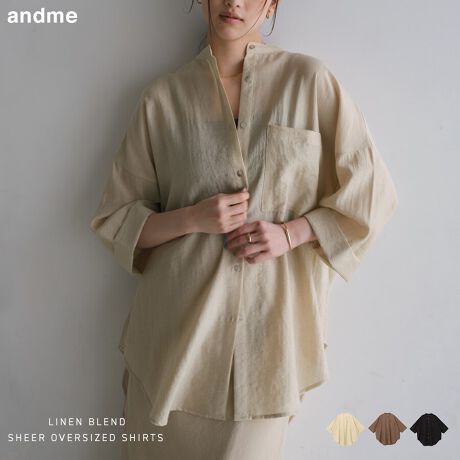 リネン ブレンド オーバーサイズ シアー シャツ