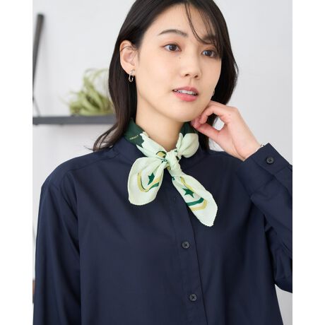 ノスタルジックな雰囲気のプリントが特徴で首元のアクセントやハンカチとしてワクワクを添える一枚です。