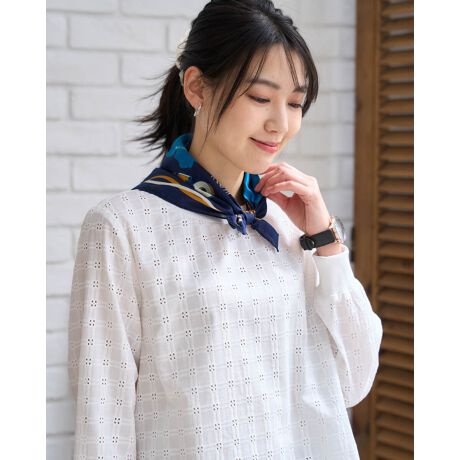 ノスタルジックな雰囲気のプリントが特徴で首元のアクセントやハンカチとしてワクワクを添える一枚です。