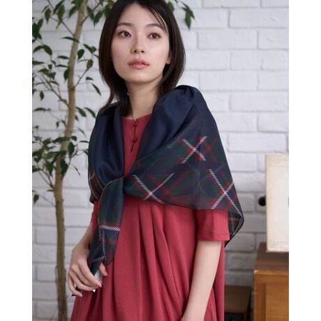 透け感のシフォン素材にGBチェック柄をプリントしました。
